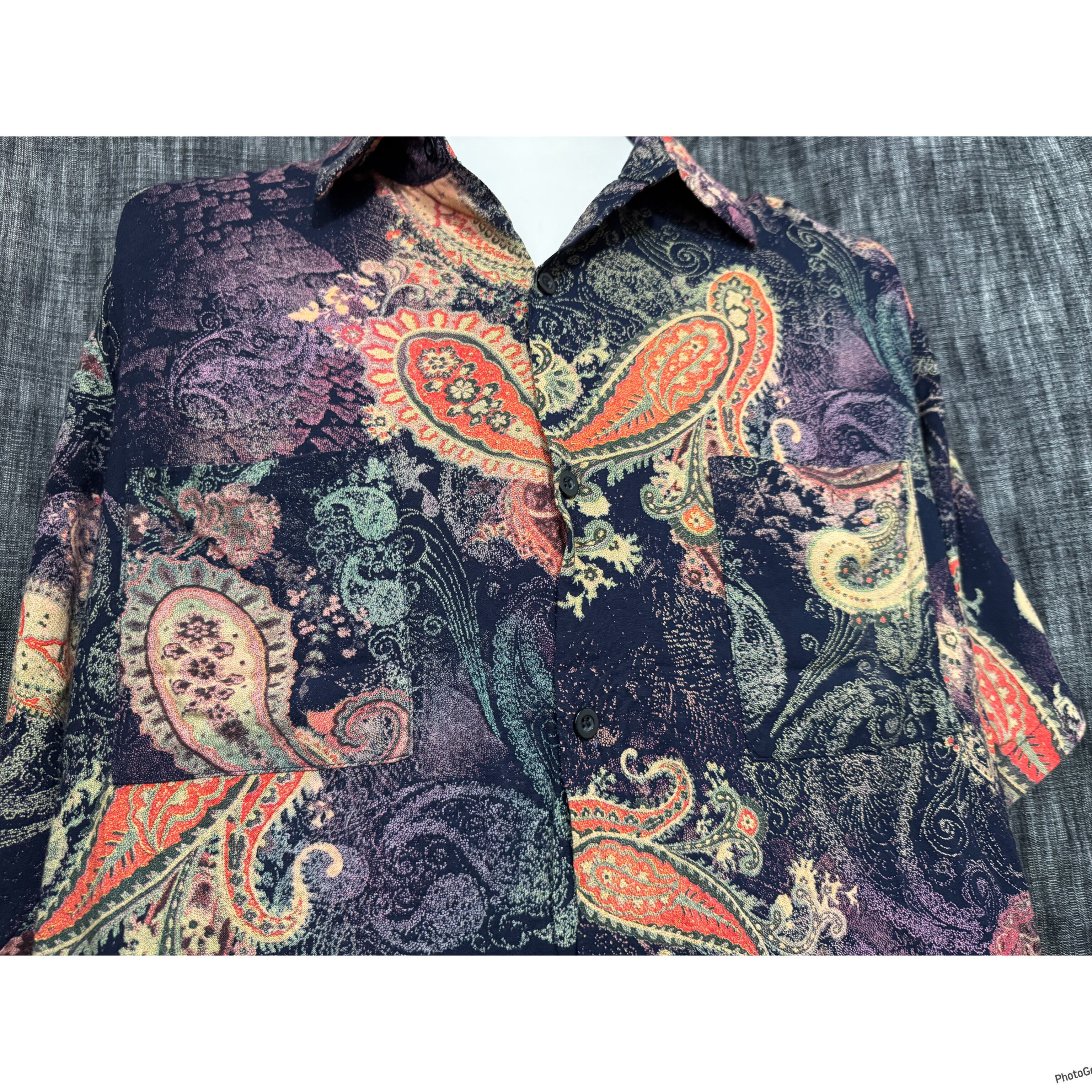 Kutir クティール レーヨン100% ペイズリー 総柄 シャツ 半袖
