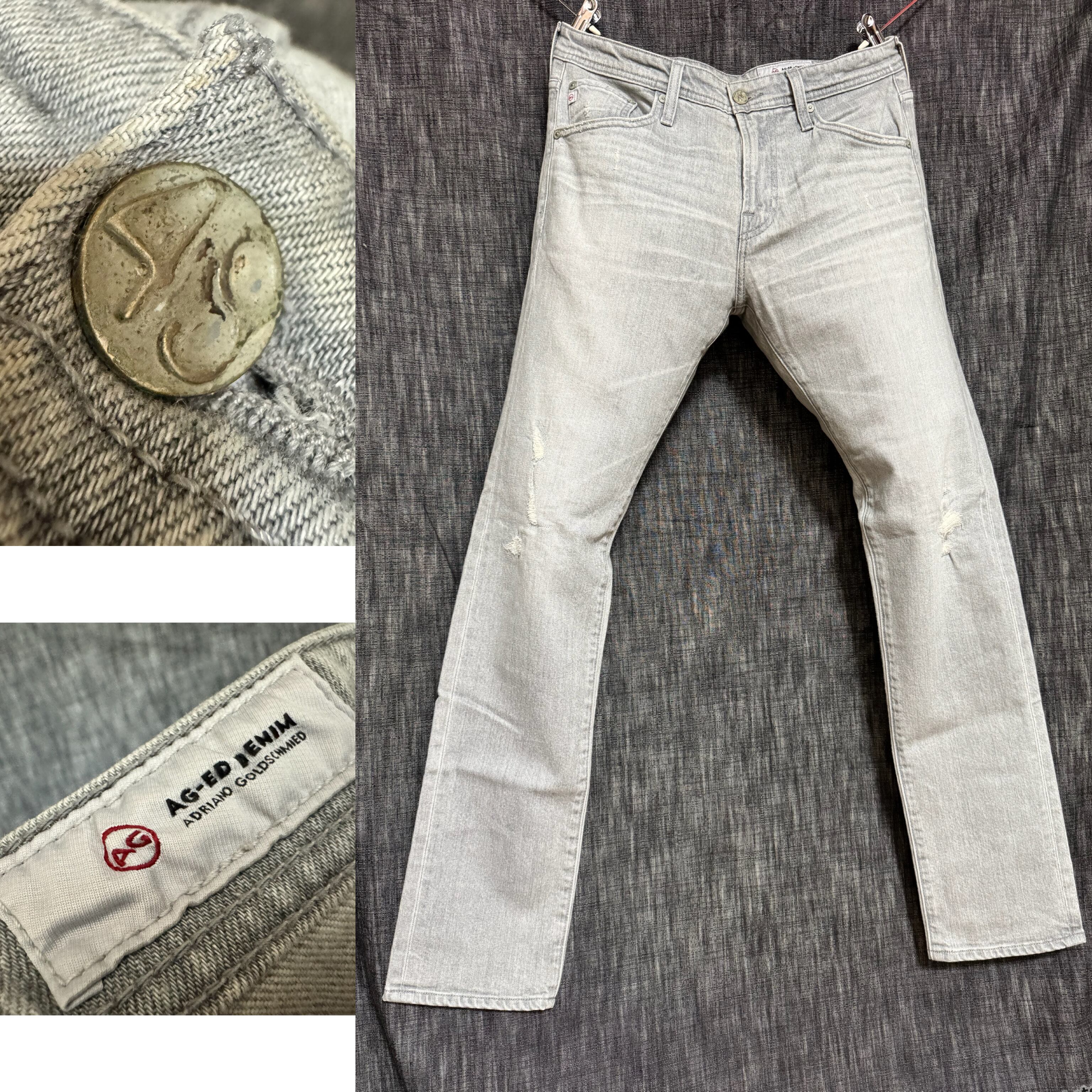 “AG”は、デニム界の巨匠 Adriano Goldschmied(アドリアーノ・ゴールドシュミット)と、ロサンゼルスのKoos Manufacturing社を率いるYul Ku(ユル・クー)が2000年に立ち上げたプレミアムデニムブランド。ブランド名は創設者のイニシャルに由来する。登場と同時にL.A.のセレブリティを中心に注目を集め、洗練された美脚シルエットと極上の穿き心地で世界的な評価を得る。独自のウォッシュ加工や立体的な色落ち表現は、AGのクラフトマンシップを象徴する技術。2008年には、長年穿き込んだようなリアルな経年変化を再現したヴィンテージライン「AG-ed(エイジド)」を展開。8年、10年、23年といった“年数”を冠したモデル名が示すように、デニムが育つ時間の美をテーマにしている。