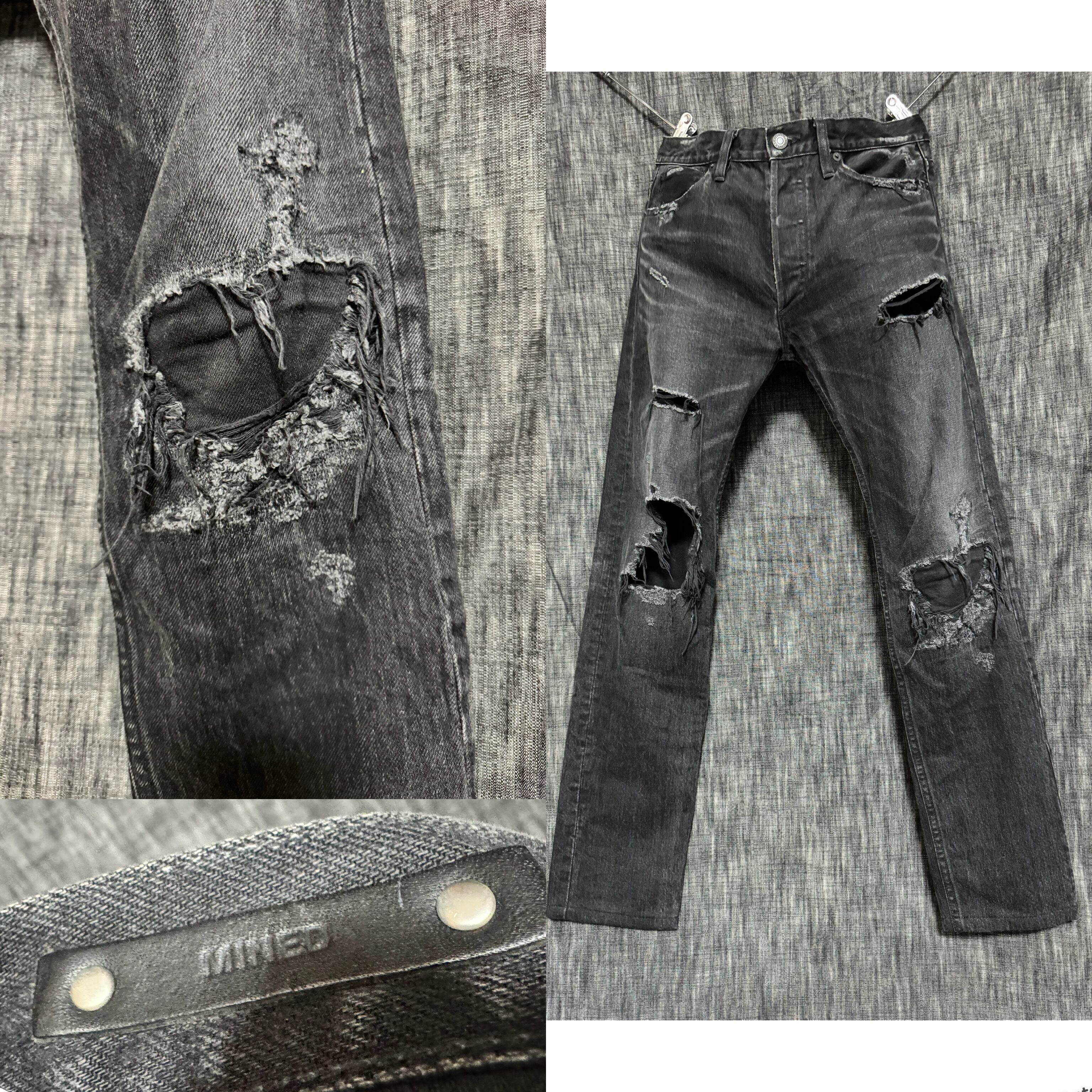 定価55000円 MINEDENIM グランジ ブラックデニム ダメージ加工 黒