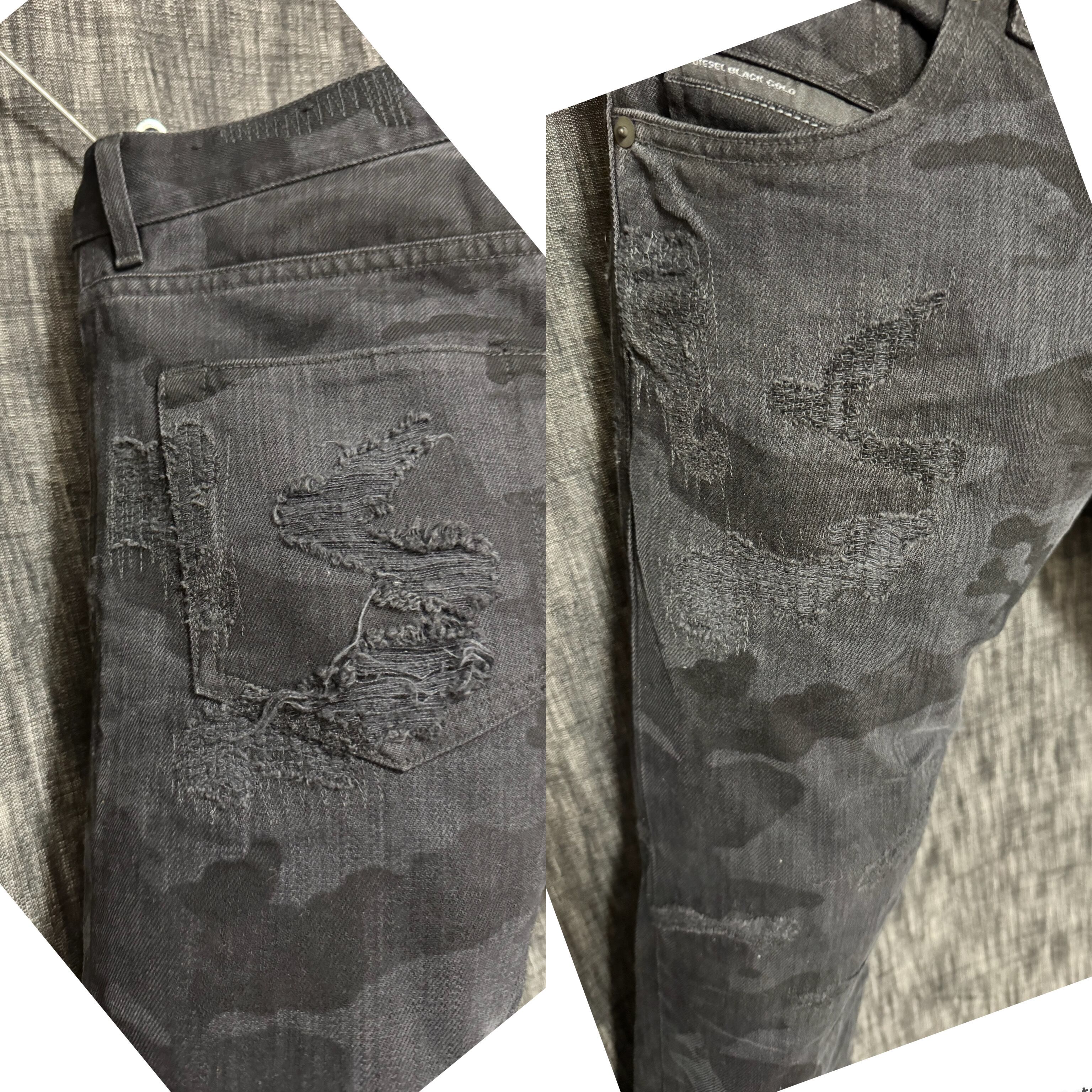 定価53900円 DIESEL高級ライン 迷彩風ダメージ加工 ブラックデニム 黒