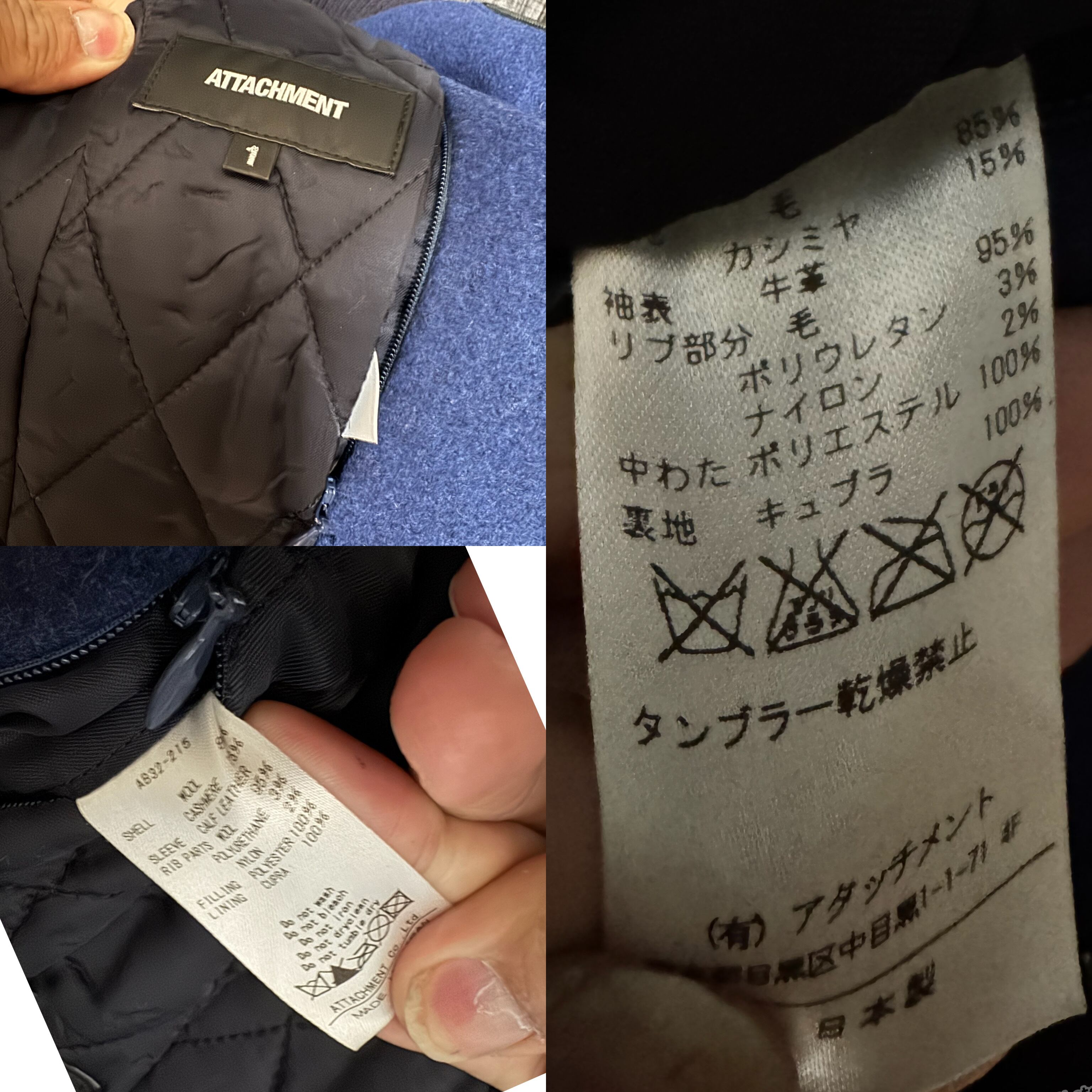 定価86900円 ATTACHMENTカーフスタジャン カシミアメルトン Y2K