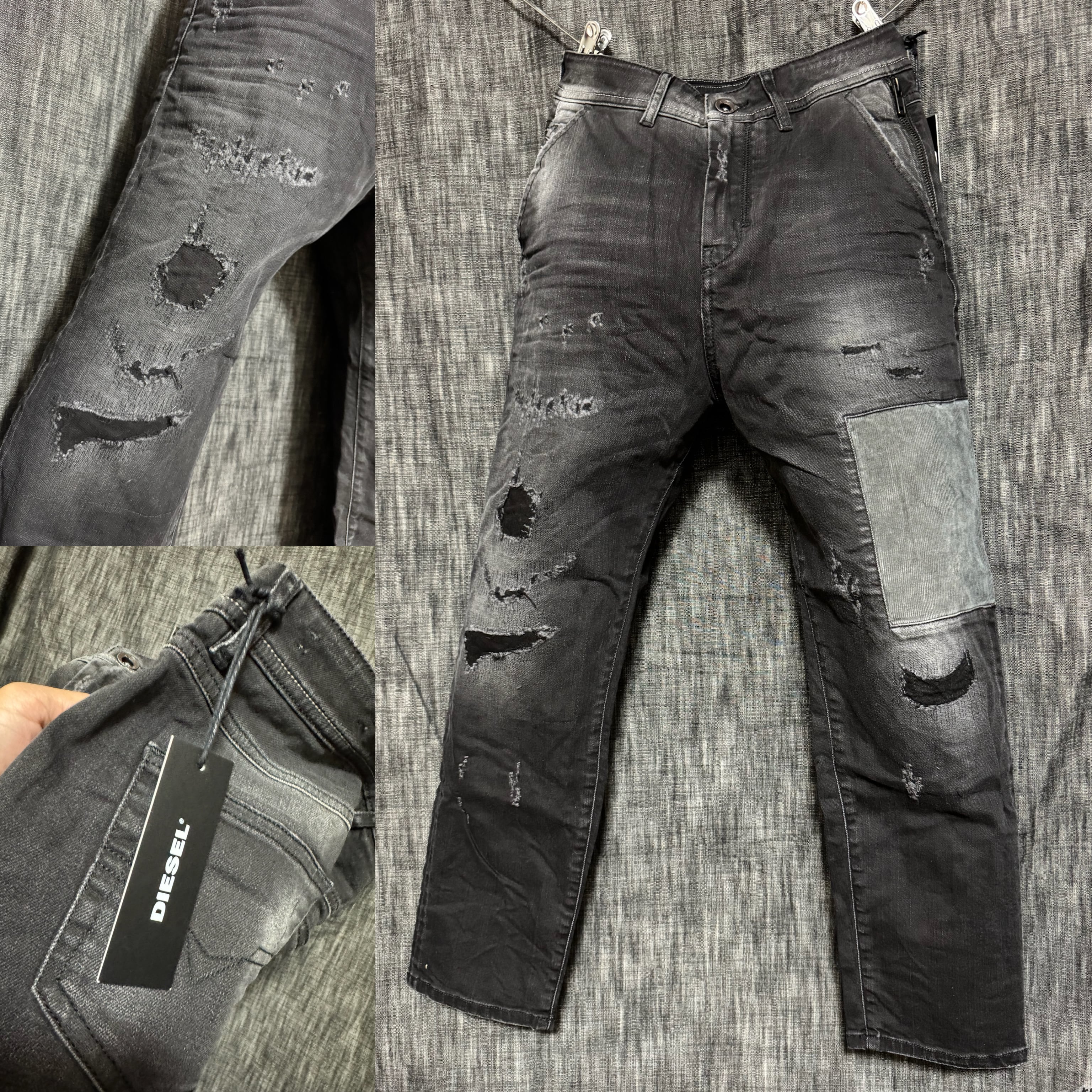 未使用 DIESEL ダメージ加工 ブラックデニム リペア加工 黒 インポート