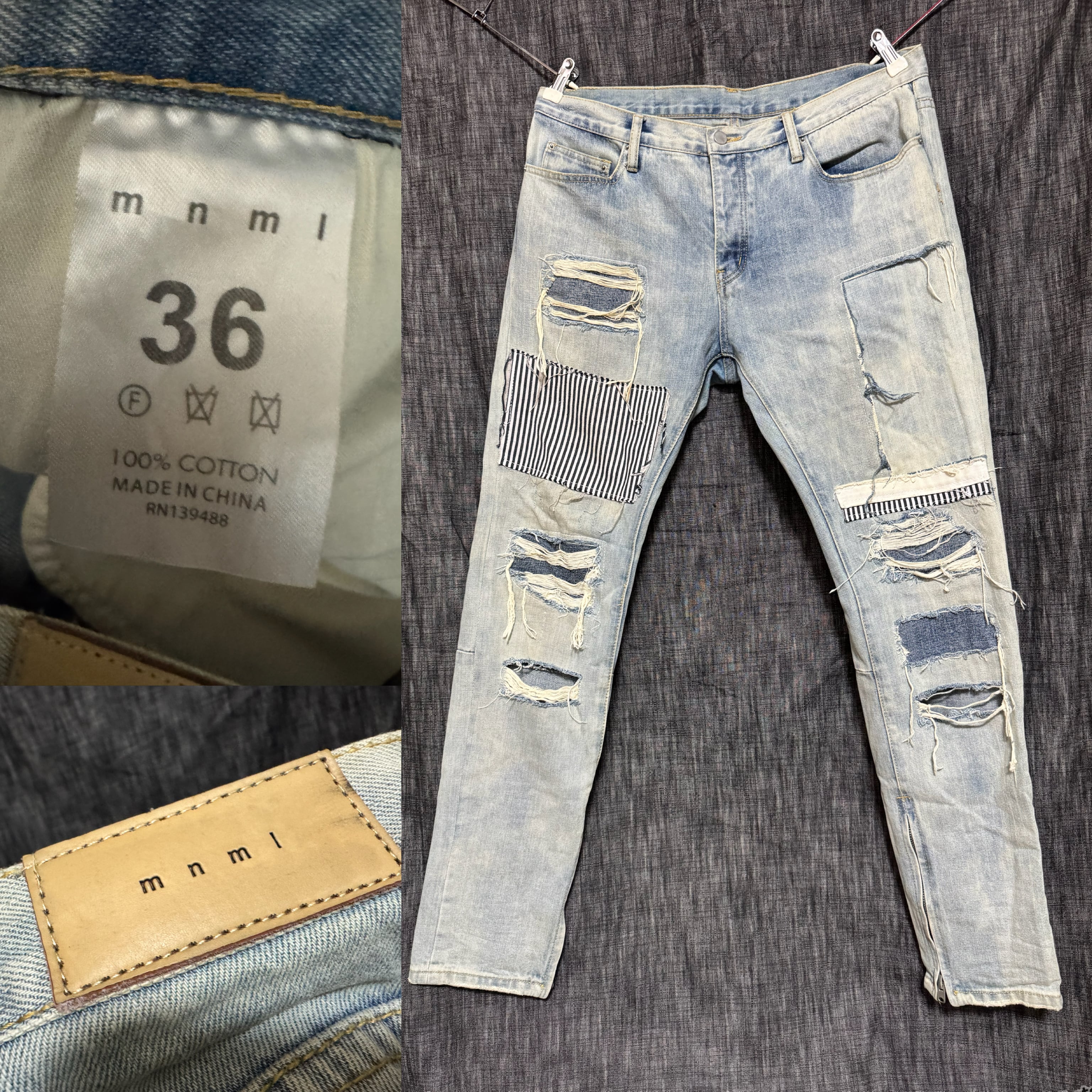 mnml 裾ジップ 希少サイズ 大きめサイズ パッチワークリペア デニム