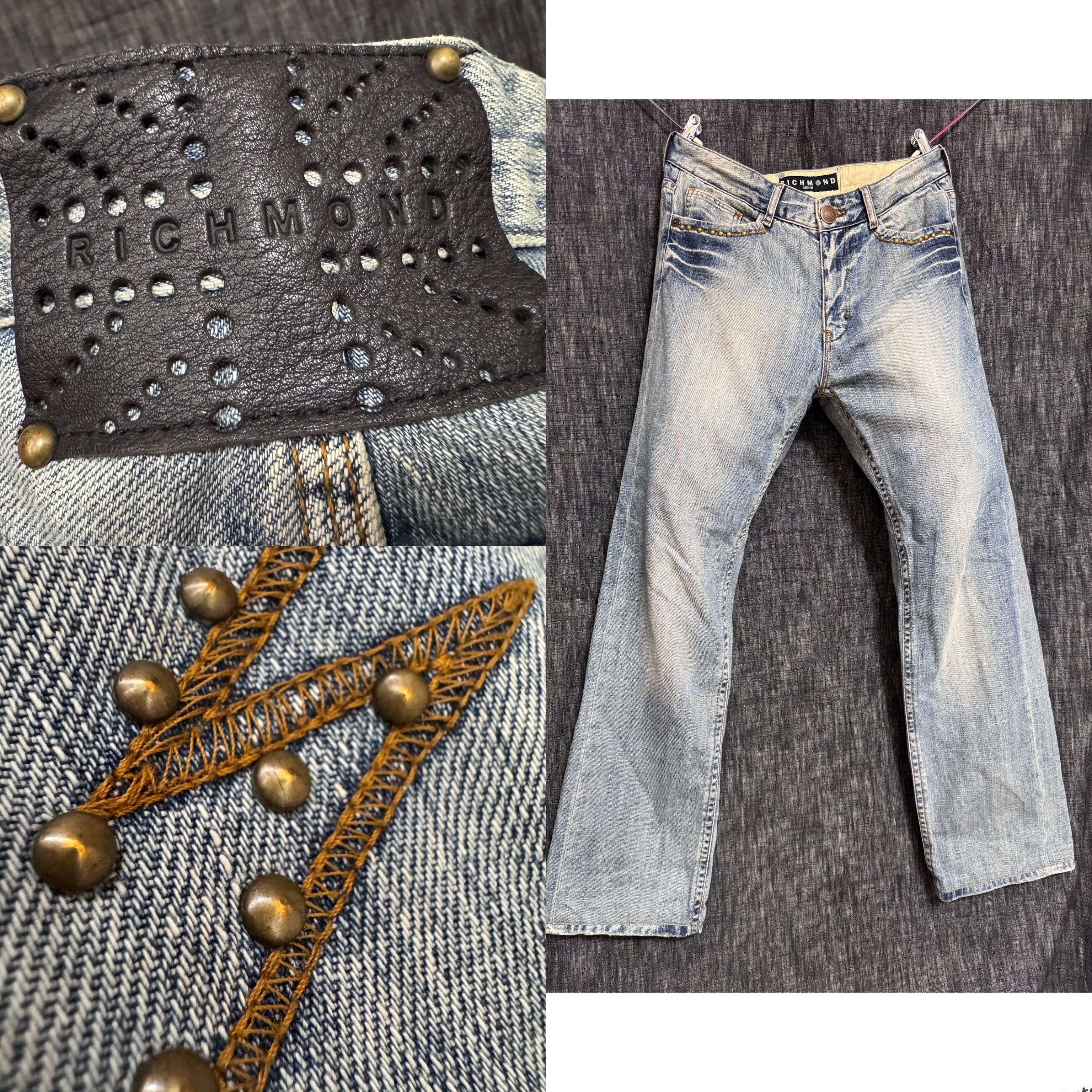 RICHMOND レザータグ スタッズ装飾デニム Y2K ロック 反骨的 パンク
