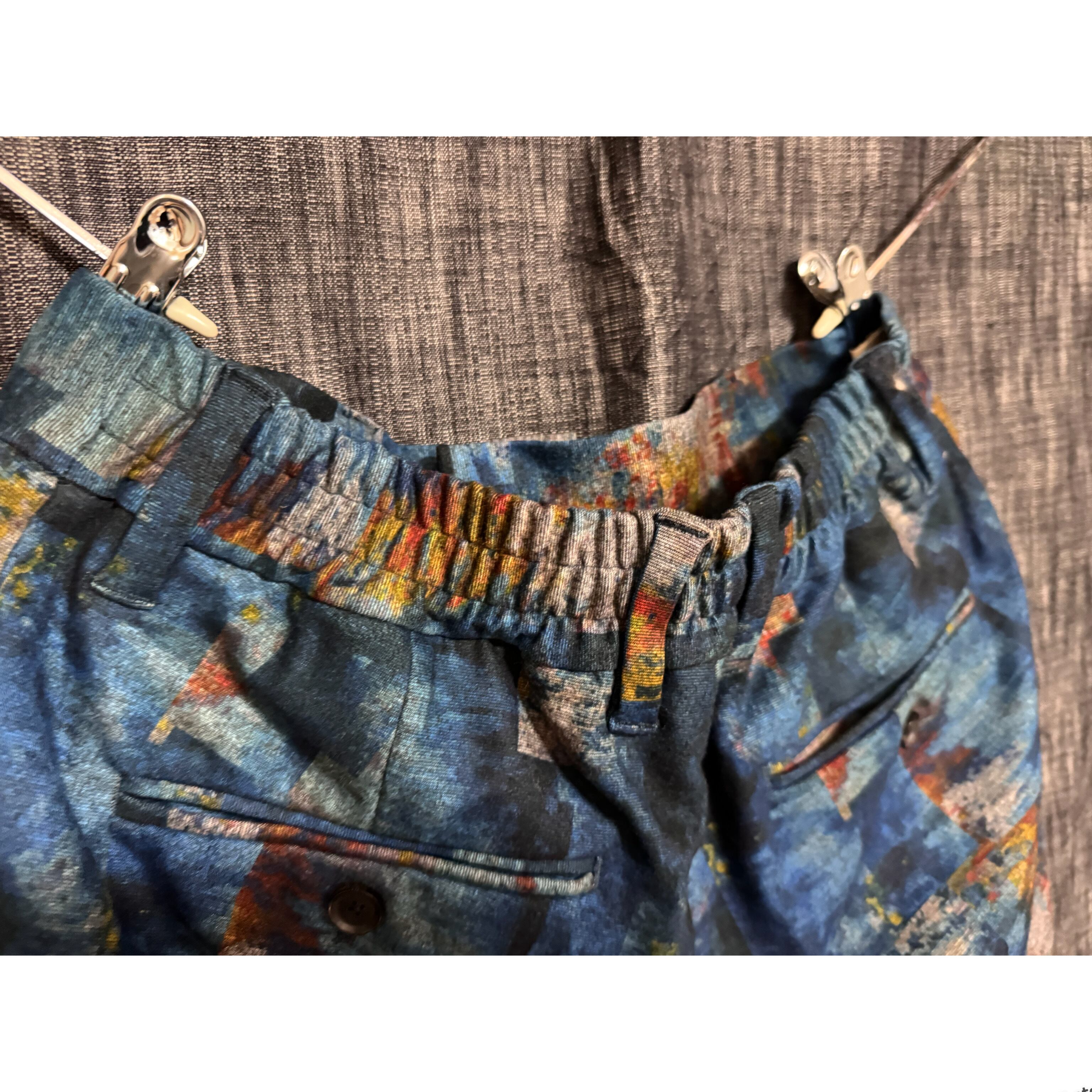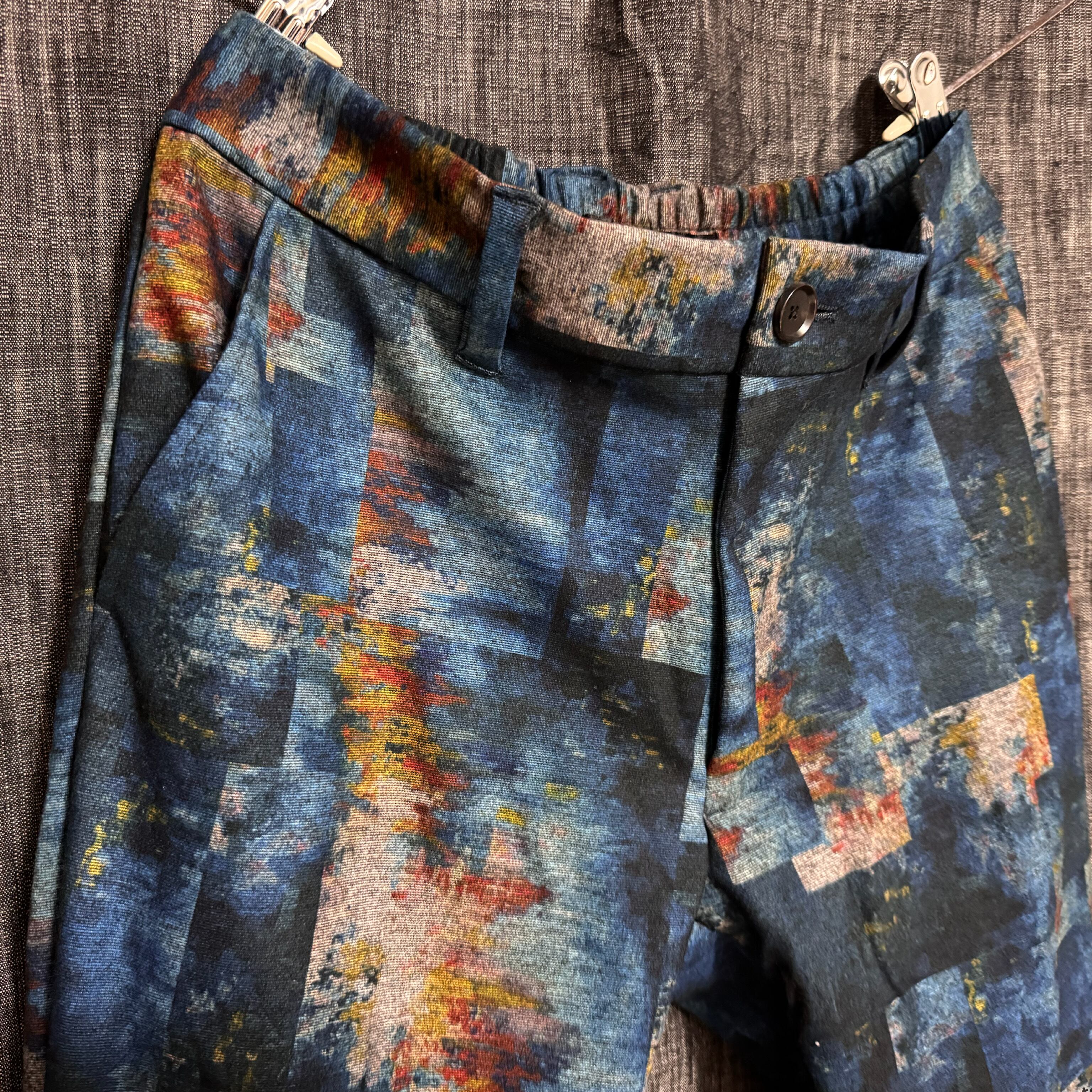 NO ID. アブストラクトアートパッチワークコラージュ ジャージパンツ ブルー