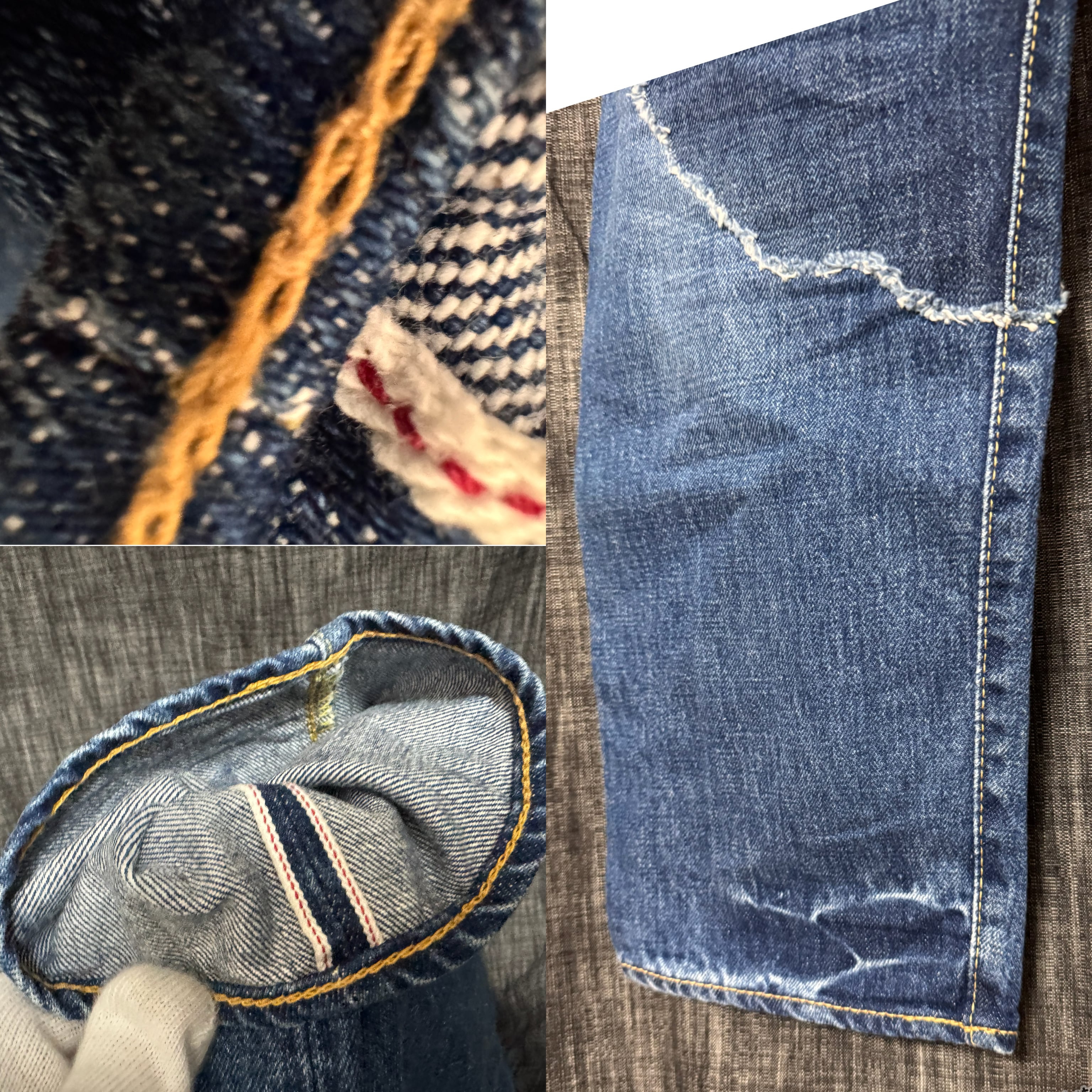 セルビッチデニムは旧式のシャトル織機で丁寧に織られた生地で、両端に「耳」と呼ばれるほつれ止めが付いているのが特徴。赤耳が代表的で、生地は高密度で丈夫、穿きこむほどに美しい色落ちが楽しめる。ビンテージ感や経年変化を重視する人に人気です。