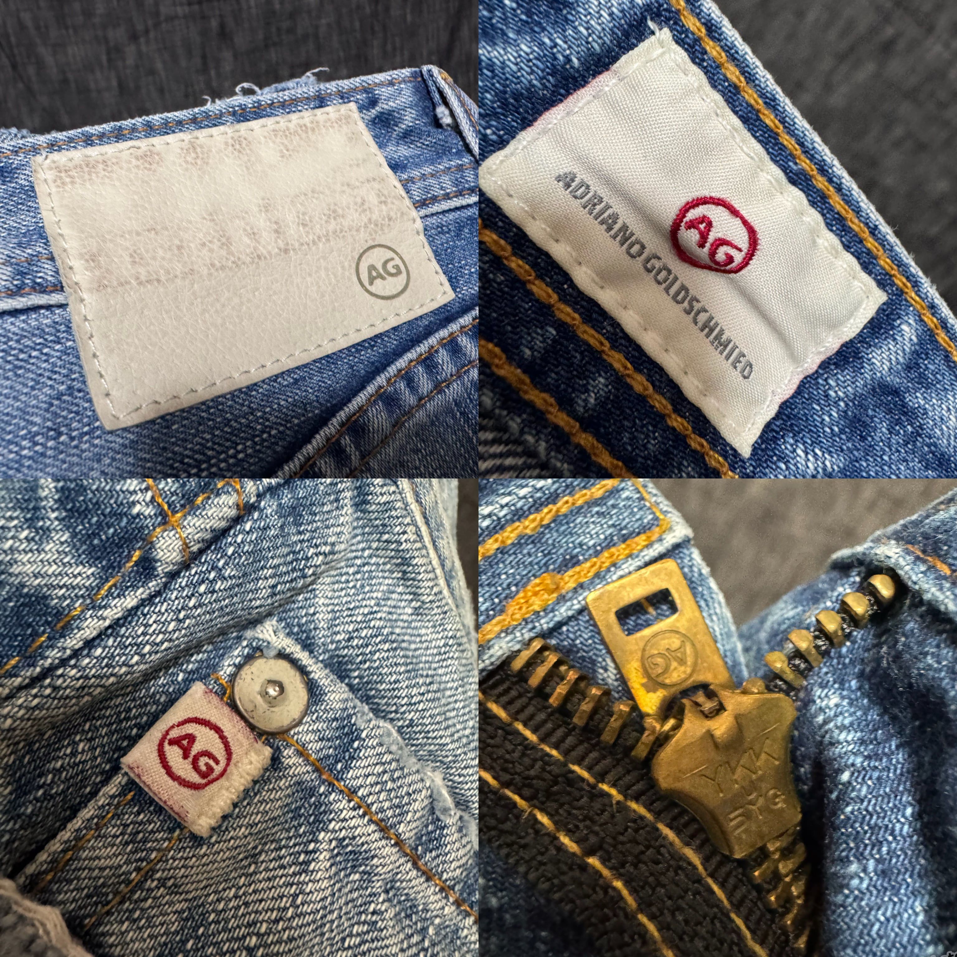 “AG”は、デニム界の巨匠 Adriano Goldschmied(アドリアーノ・ゴールドシュミット)と、ロサンゼルスのKoos Manufacturing社を率いるYul Ku(ユル・クー)が2000年に立ち上げたプレミアムデニムブランド。ブランド名は創設者のイニシャルに由来する。登場と同時にL.A.のセレブリティを中心に注目を集め、洗練された美脚シルエットと極上の穿き心地で世界的な評価を得る。独自のウォッシュ加工や立体的な色落ち表現は、AGのクラフトマンシップを象徴する技術。2008年には、長年穿き込んだようなリアルな経年変化を再現したヴィンテージライン「AG-ed(エイジド)」を展開。8年、10年、23年といった“年数”を冠したモデル名が示すように、デニムが育つ時間の美をテーマにしている。