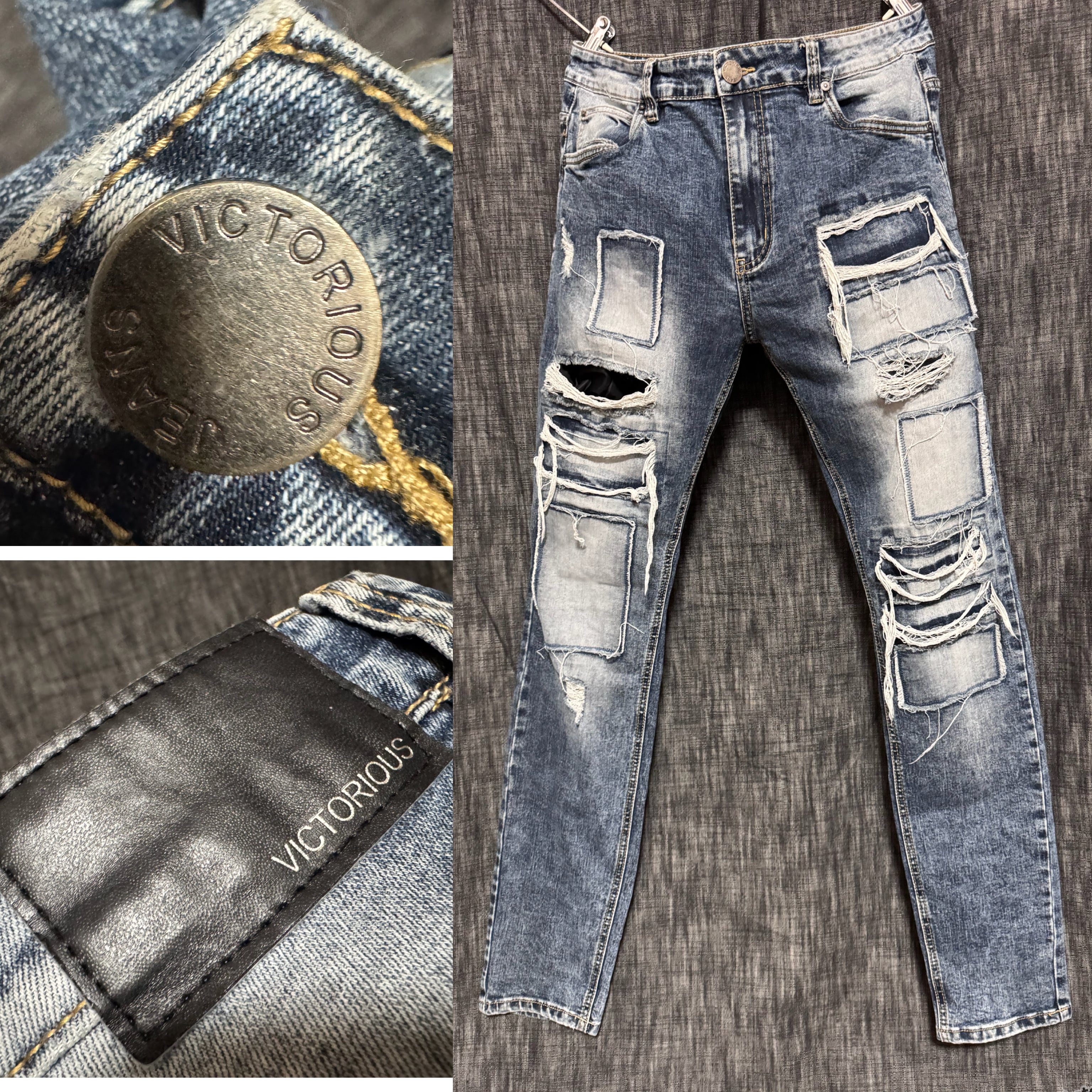 VICTORIOUS ダメージ加工 スキニーデニム インポート 西海岸 USA