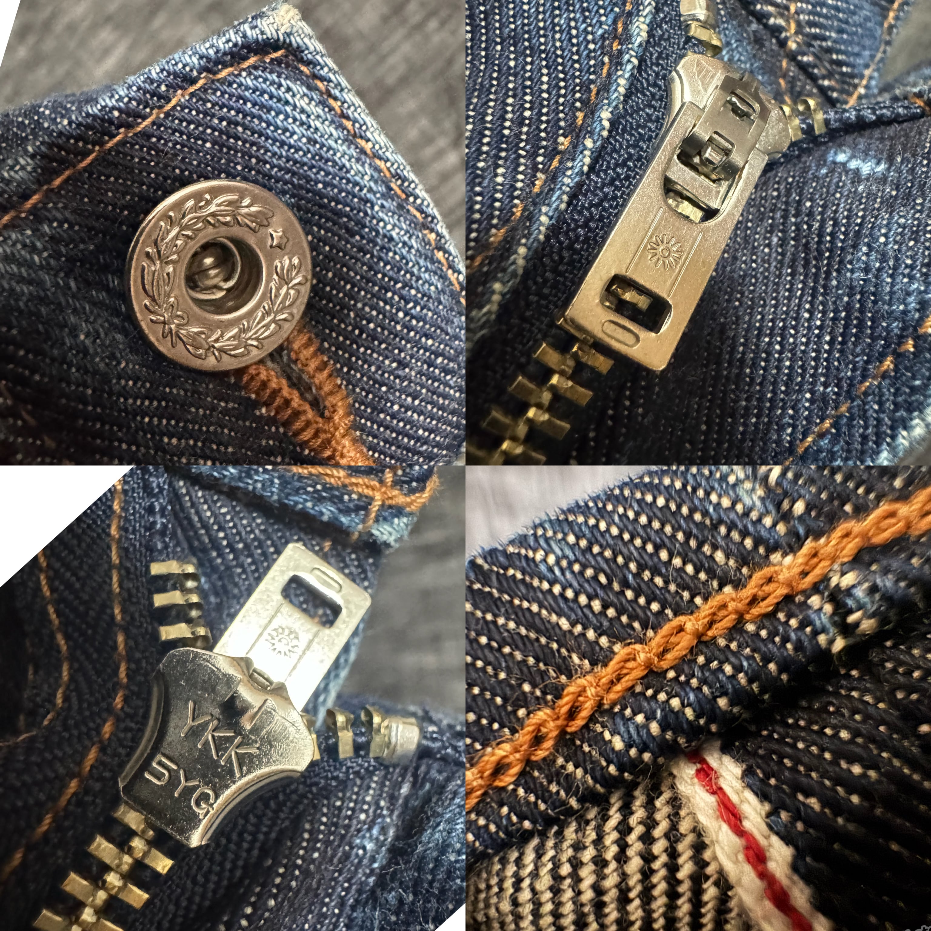 デニム ジーンズ インディゴ 月桂樹ボタン