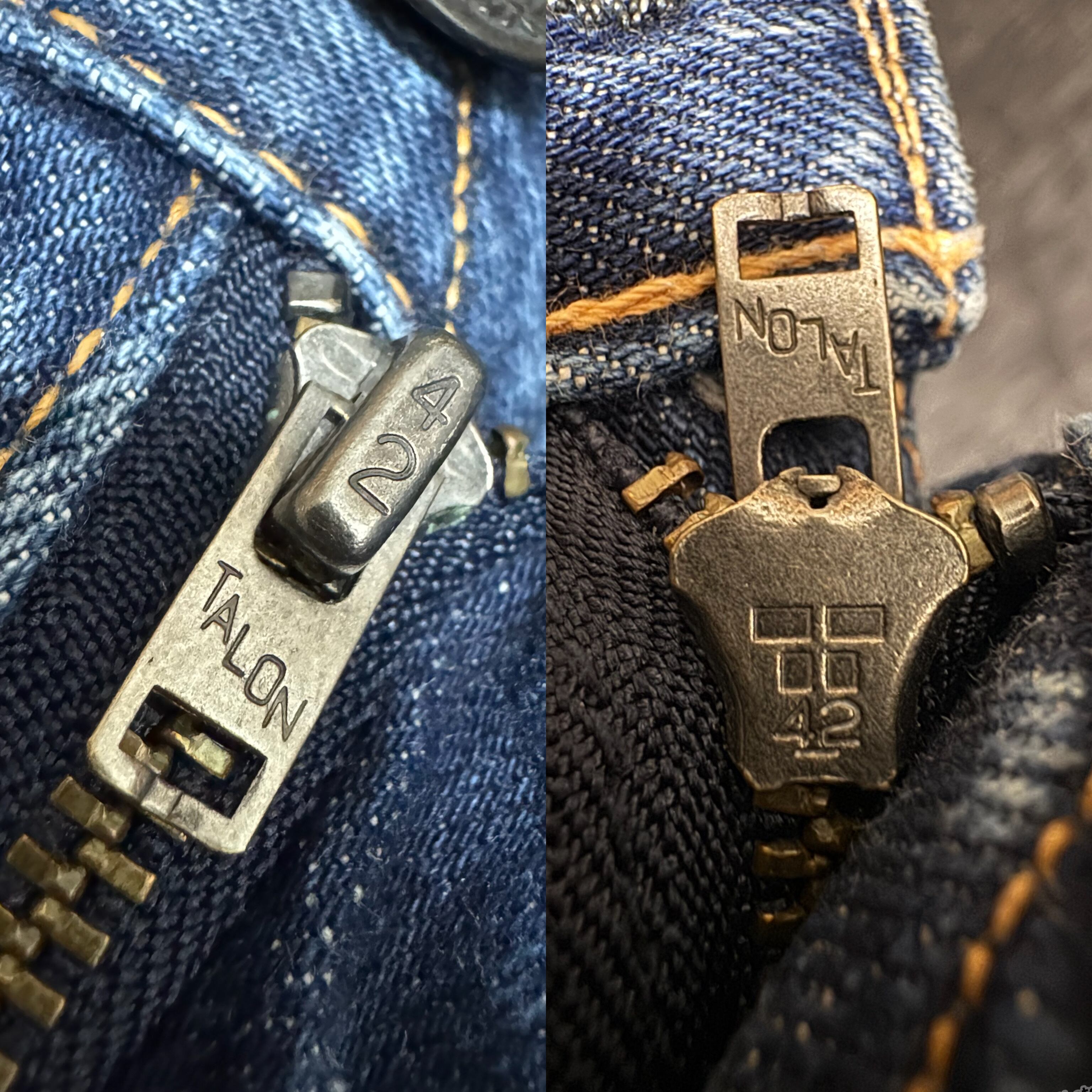 TALON(タロン)はアメリカ最古のファスナーブランドで、ヴィンテージデニムやミリタリーウェアに多く使われてきた名門です。重厚感ある金属製ジップとクラシックな刻印が特徴で、デザイン性と耐久性を兼ね備えています。現代でも復刻系や高級ジーンズブランドに採用され、細部にこだわる証として重宝されています。ファッション性と機能性を両立した“語れるジップ”です。