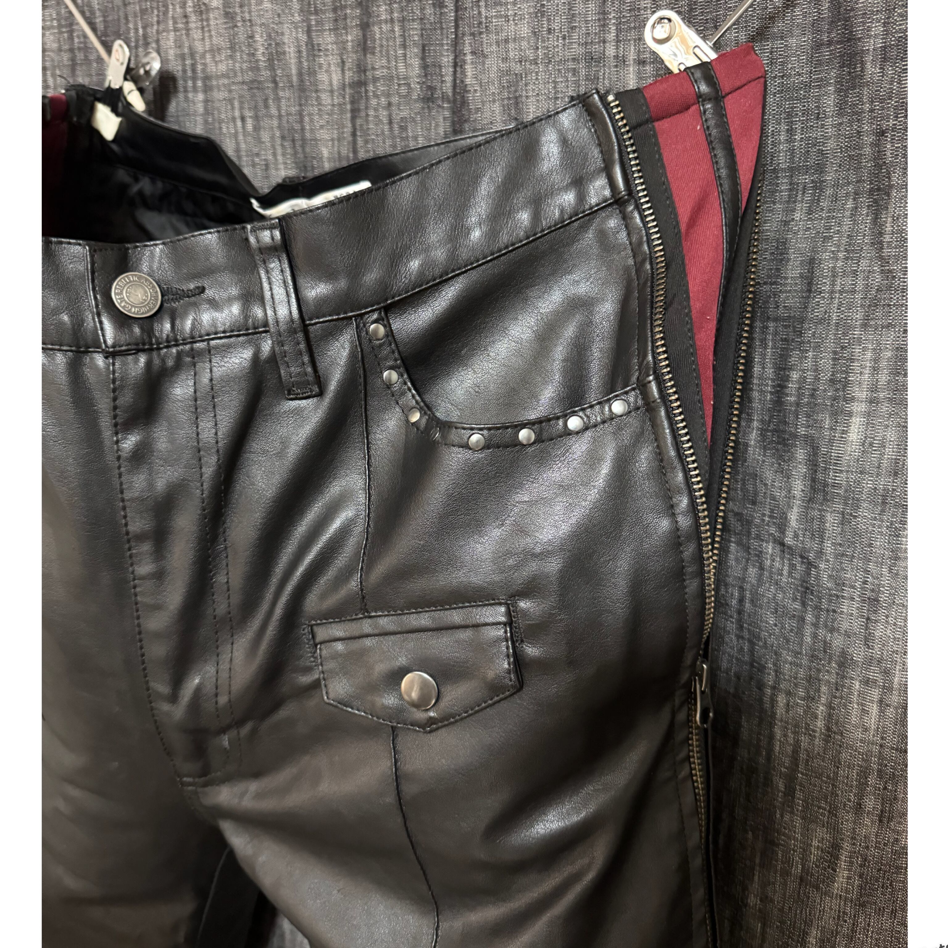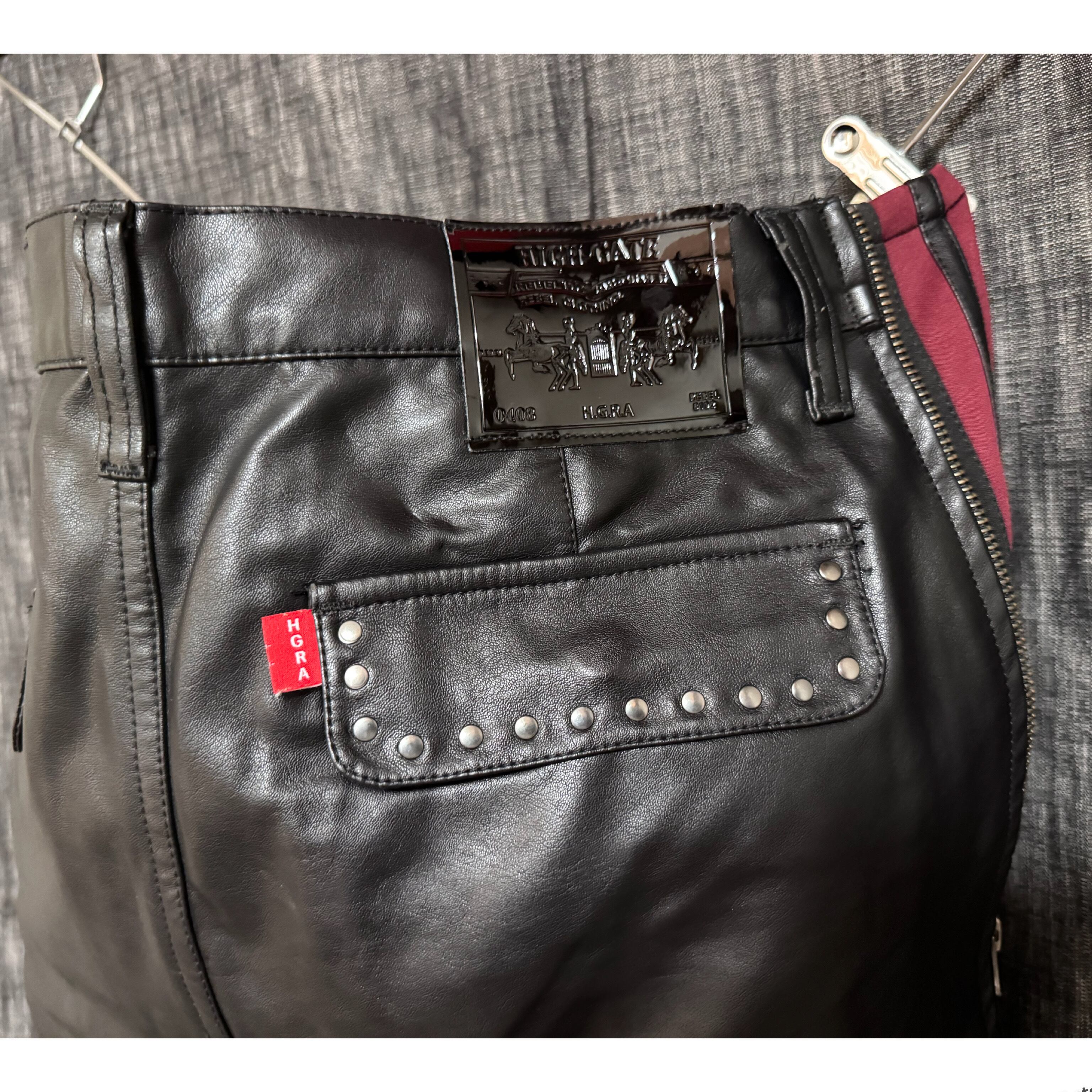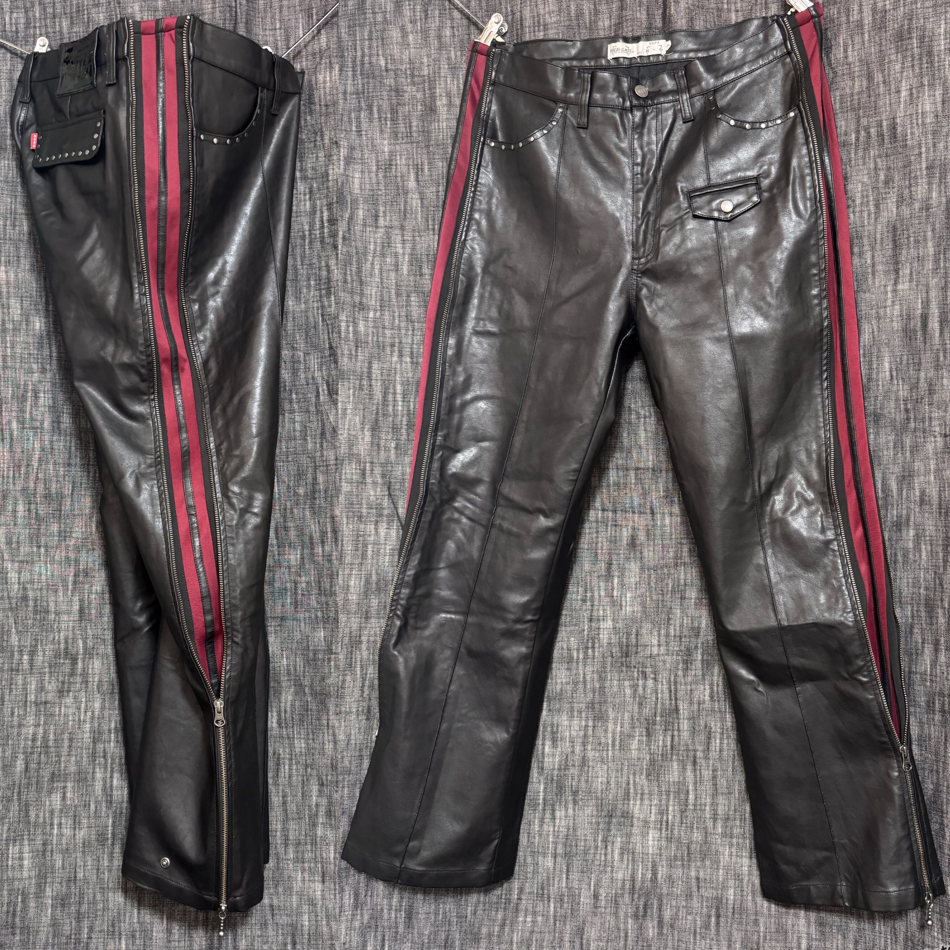 変形ジップデザイン レザーパンツ