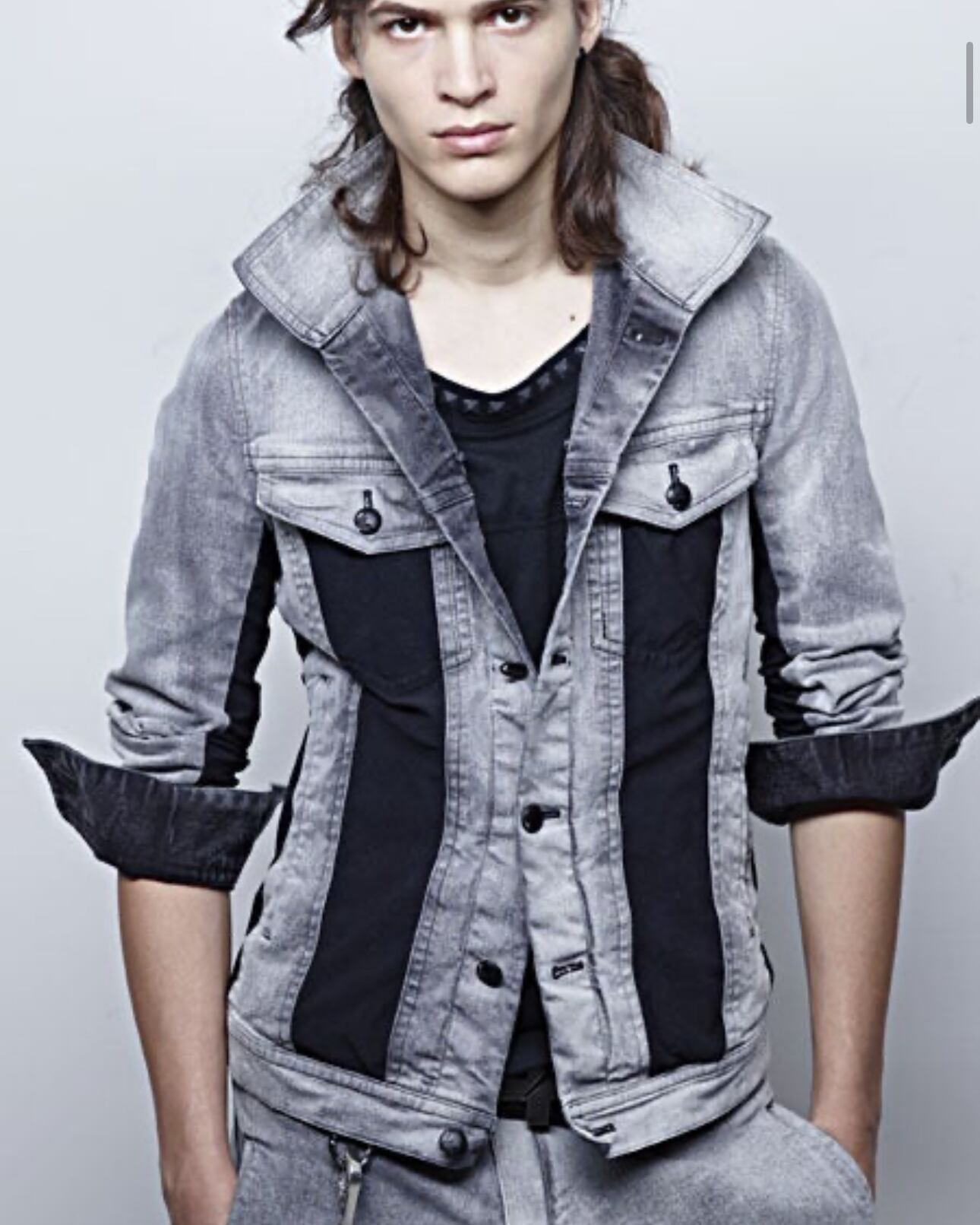 特殊なウォッシュを掛けたデニム生地と、動きやすくする為に組み合わされたジャージのドッキングアイテム。