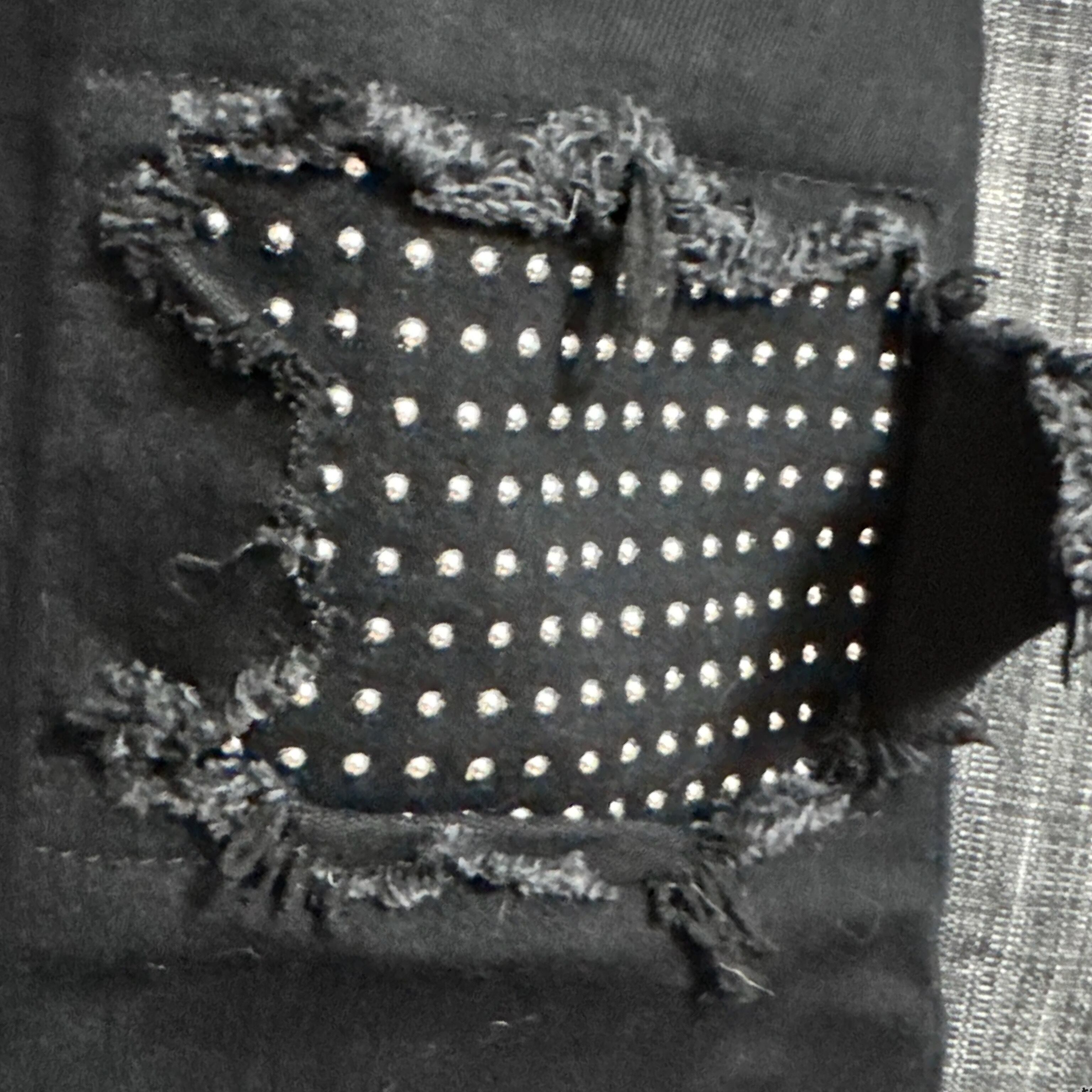 クラッシュ部分には光沢のあるスタッズがデザインされており裏から覗く上品なデザインが特徴的なデニムです。また、非常にストレッチが効いており、レギンスのように足に吸い付くようなフィット感が特徴的でもある作品です。
