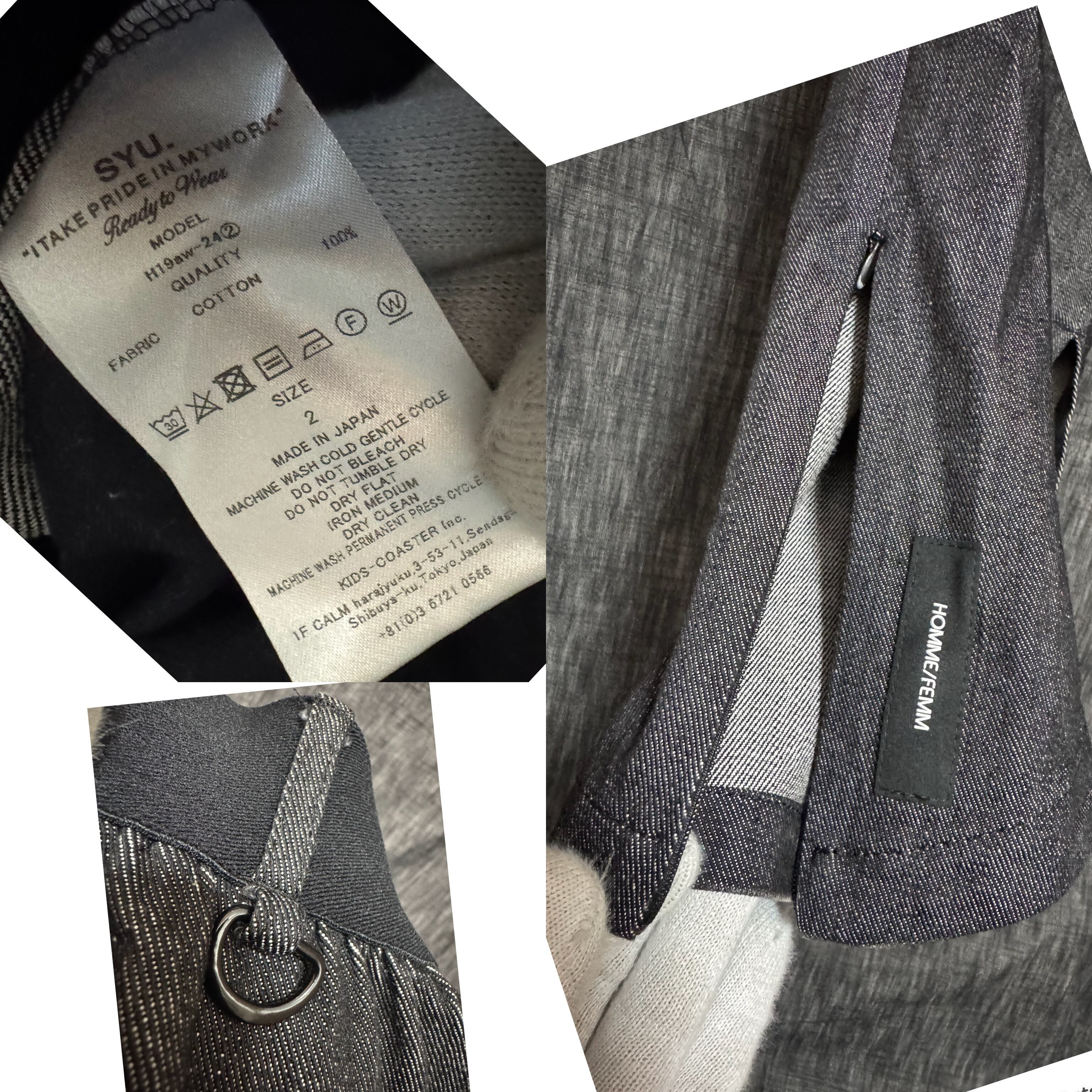 2014年に独学で服作りをスタートし、翌年にブランド「SYU.(シュウ)」を設立。2015年秋冬シーズンよりコレクションを発表している。2017年にはブランド名を「SYU.HOMME/FEMM」へと改名。「FEMM」は本来の“FEMME”とは異なる表記で、性別に限定しないスタンスを示すために意図的に採用されている。デザイナー自身の背景を軸に、固定的な性別概念や既存の価値観にとらわれない表現を特徴とし、メンズ・レディースの枠に収まらないユニセックスな提案を行う。コレクションはシーズンごとに明確なテーマ性を持ち、グラフィックやシルエットを通じて思想性を反映したデザインが展開されている。