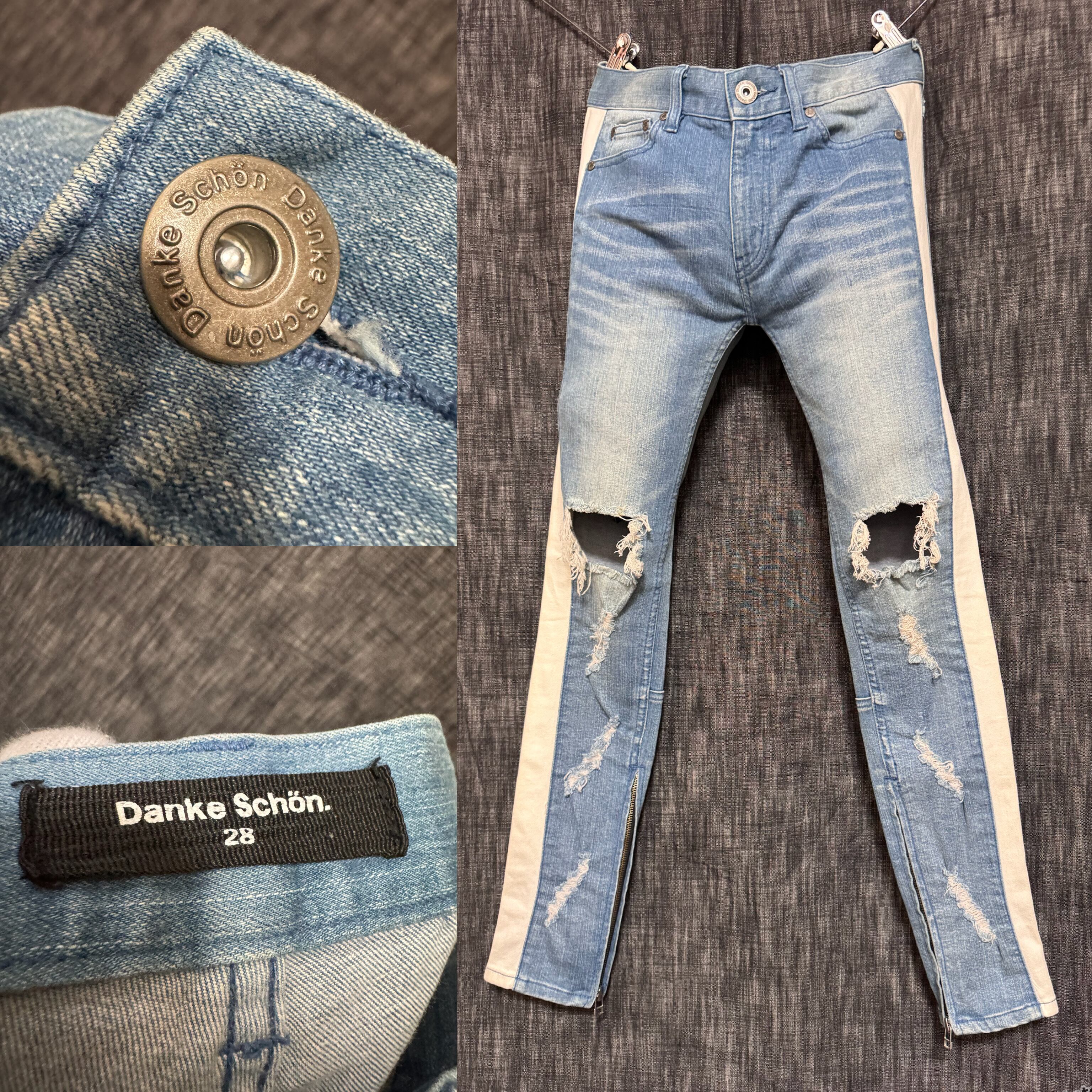 DANKE SCHON サイドライン スキニーデニム 裾ジップ ダメージ加工
