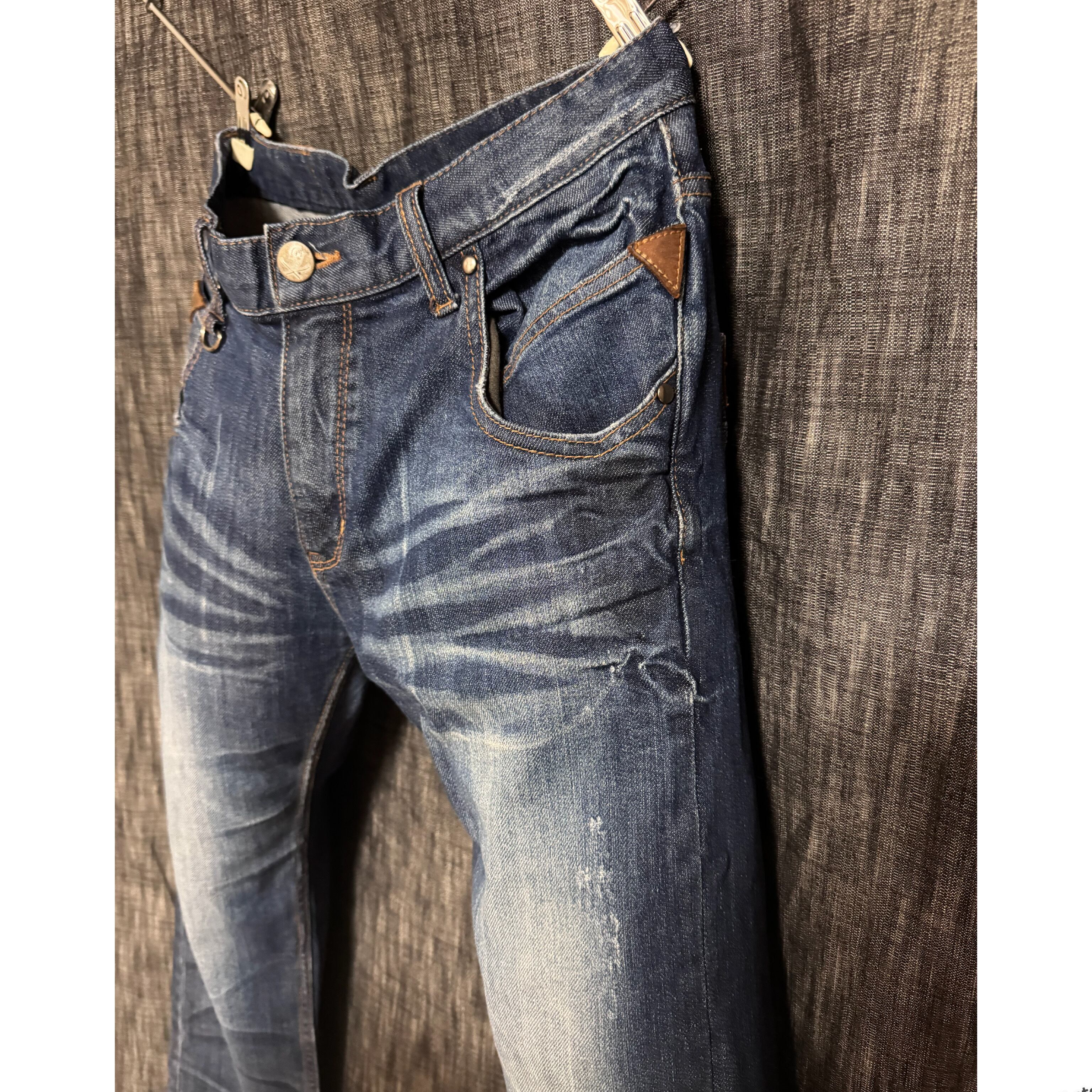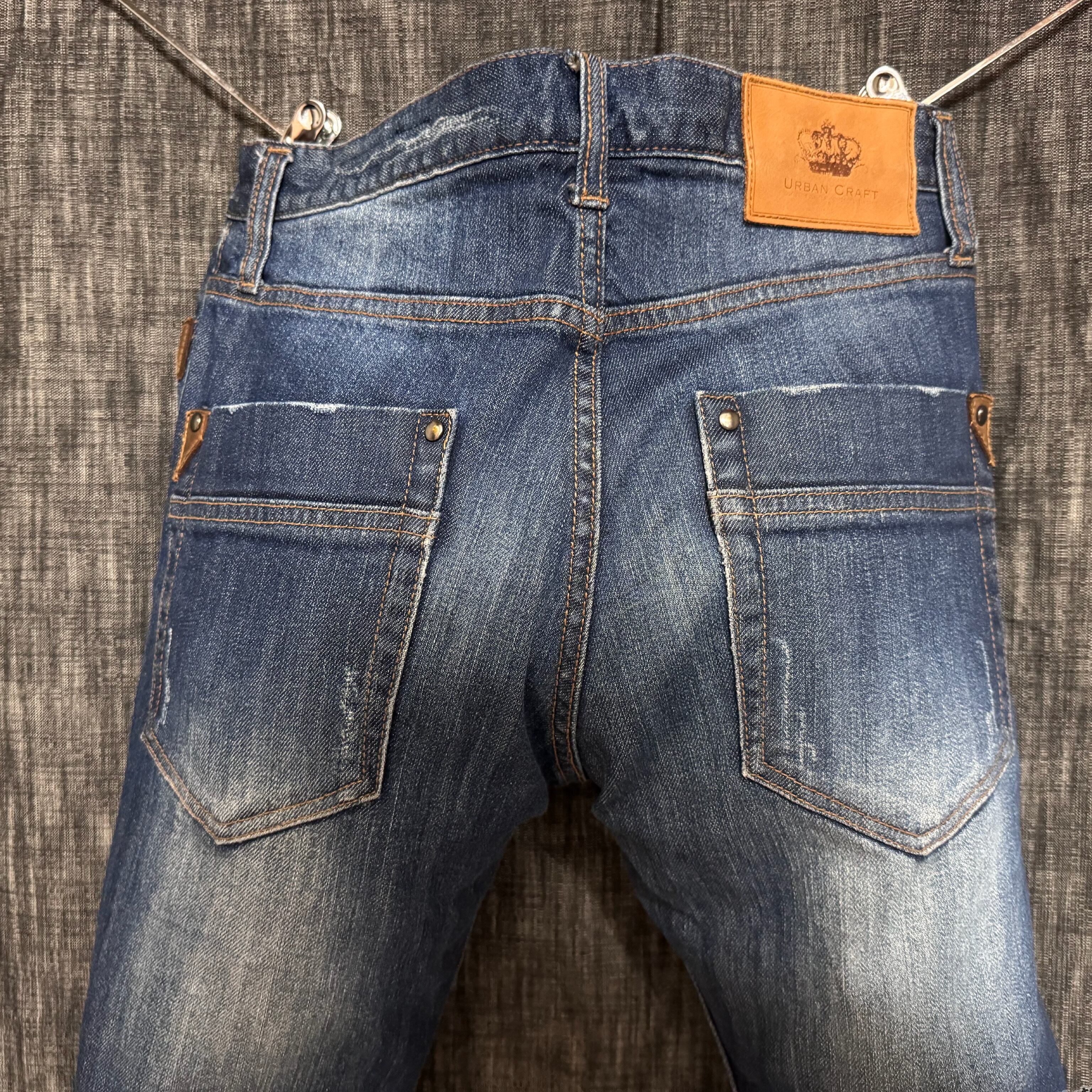 URBAN CRAFT レザー装飾デニム ジーンズ Y2K シワ加工 スカル