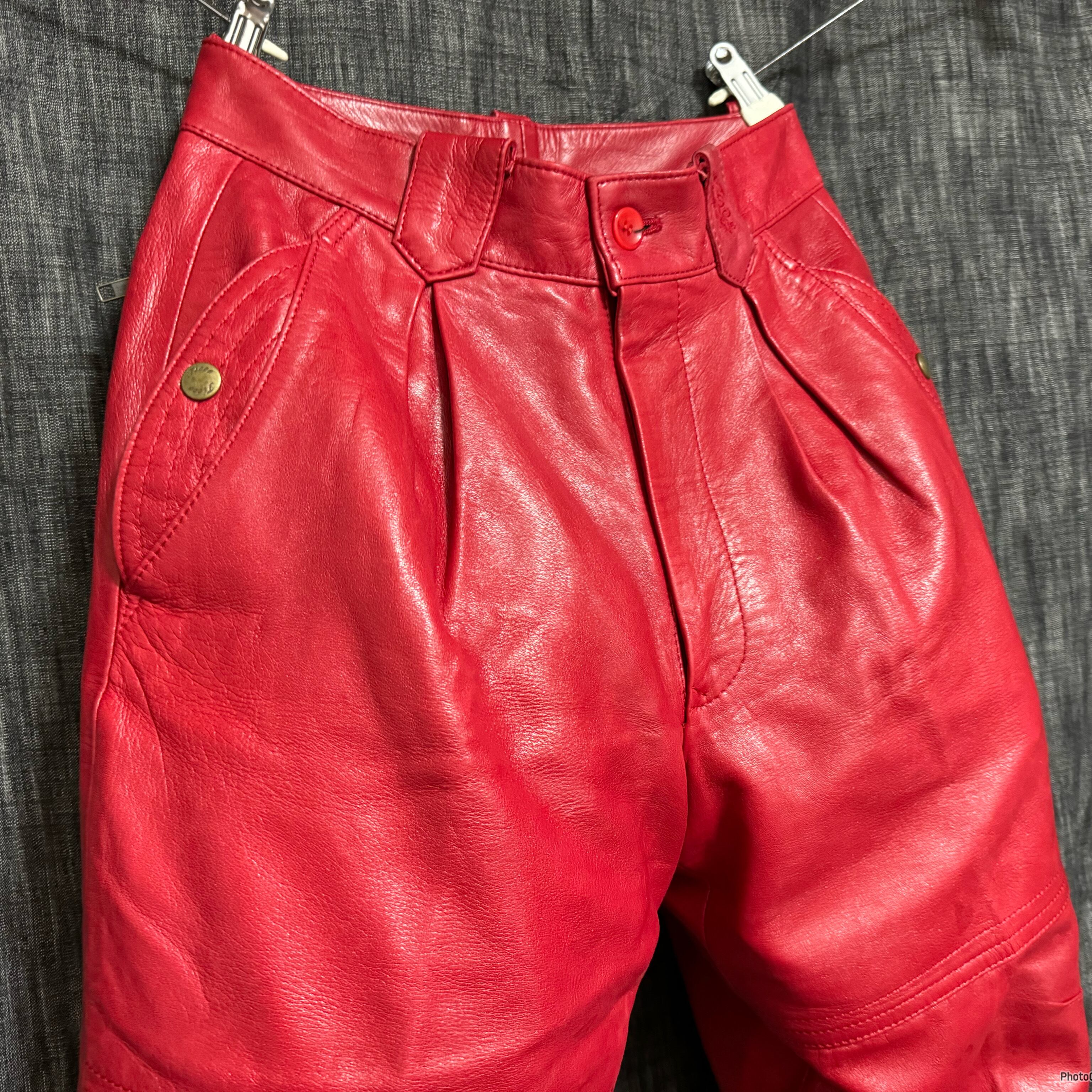 Ficce Uomo フィッチェ 羊革 シープレザーパンツ 赤 レッド 刺繍 S